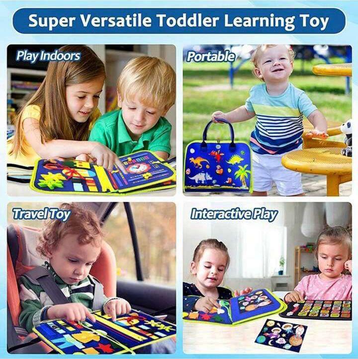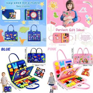 – Sensory Packed Board With All Basic Skills, Zippers, Laces, Buttons, Belt, Buckles, Shapes, Alphabets, Numbers, Colors, Directions, Clock Learning & Puzzles
